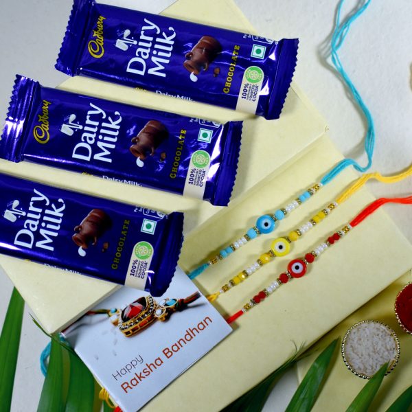 Gorgeous Designer Rakhi Trio with Chocolate Hamper