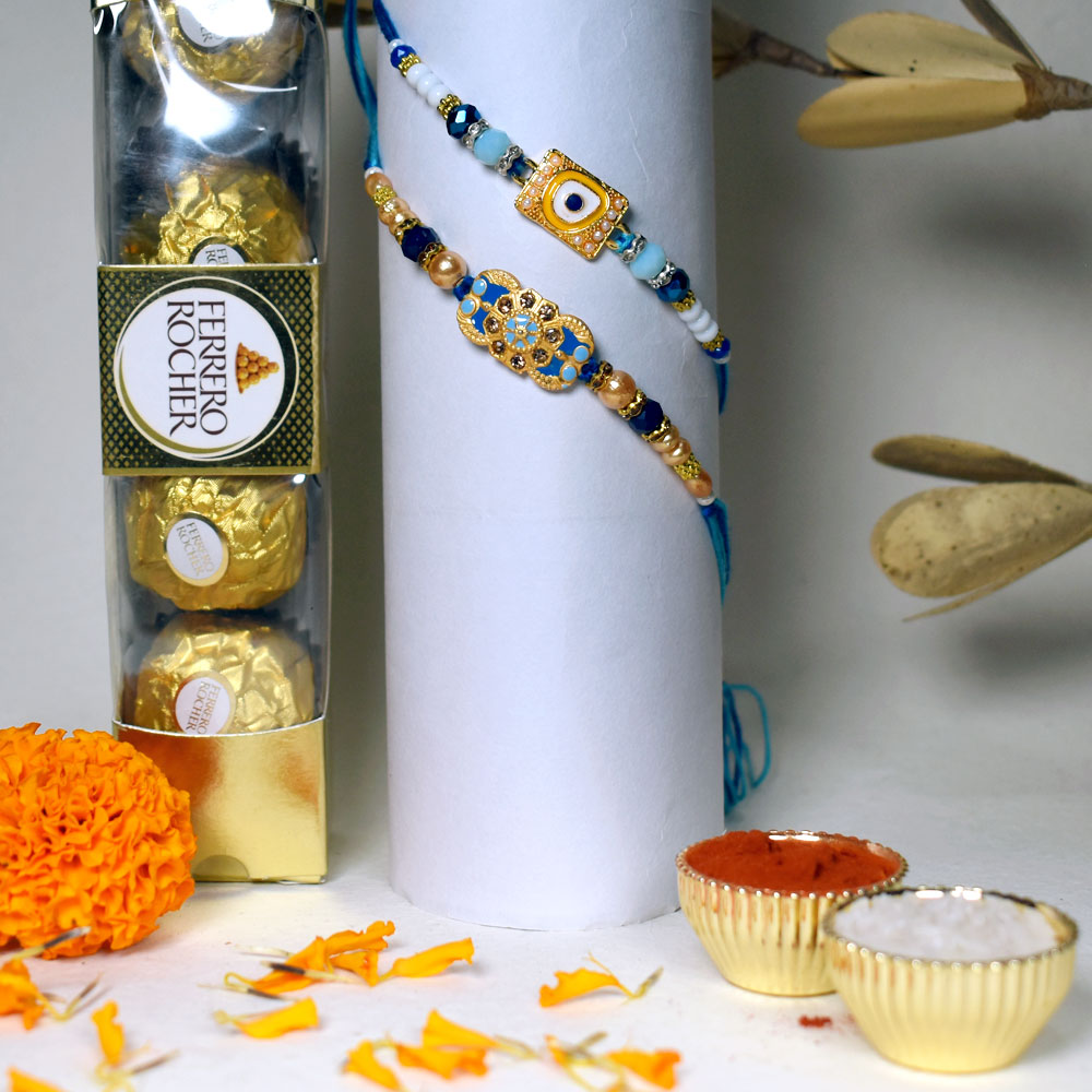 Evil Eye Rakhi Duo with Rocher Chocolate